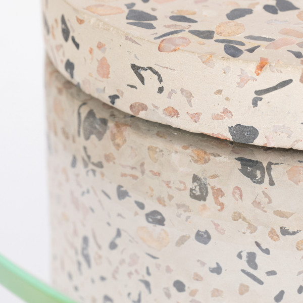 Dit product is momenteel niet te bezichtigen in de winkel, maar uit de serie Terrazzo is wel het onderstaande artikel aanwezig in de woonwinkel. Op basis van dit artikel kunt u een goed beeld krijgen van de afwerking en kwaliteit. Laat je inspireren in de woonwinkel van LUMZ!