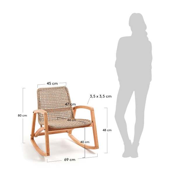 De Kave Home Thana schommelstoel is gemaakt van massief acaciahout en polyester touw: voor een bohémien look in de tuin! Dankzij de beschermende PU-coating is de schommelstoel heel geschikt om buiten te gebruiken. Bij heftige regen en in de winter kun je de stoel wel beter even afdekken.